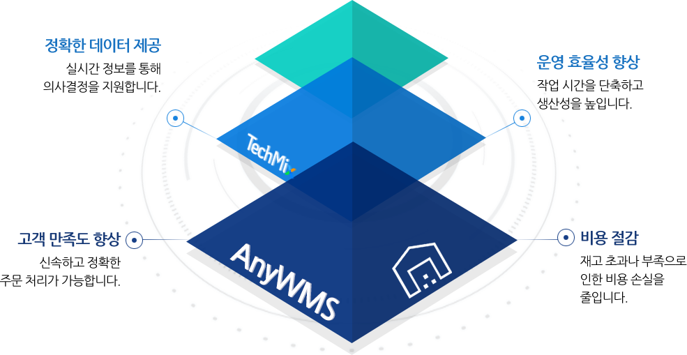 AnyWMS는 물류 효율성을 극대화하여 비용을 절감하고, 빠른 재고 관리로 고객 만족도를 높입니다. 실시간 데이터 분석으로 정확한 예측과 의사결정을 지원하며, 시스템 통합을 통해 모든 물류 과정을 한 곳에서 관리할 수 있습니다. 스마트한 물류 혁신을 선도하는 WMS로 경쟁력을 강화하세요!